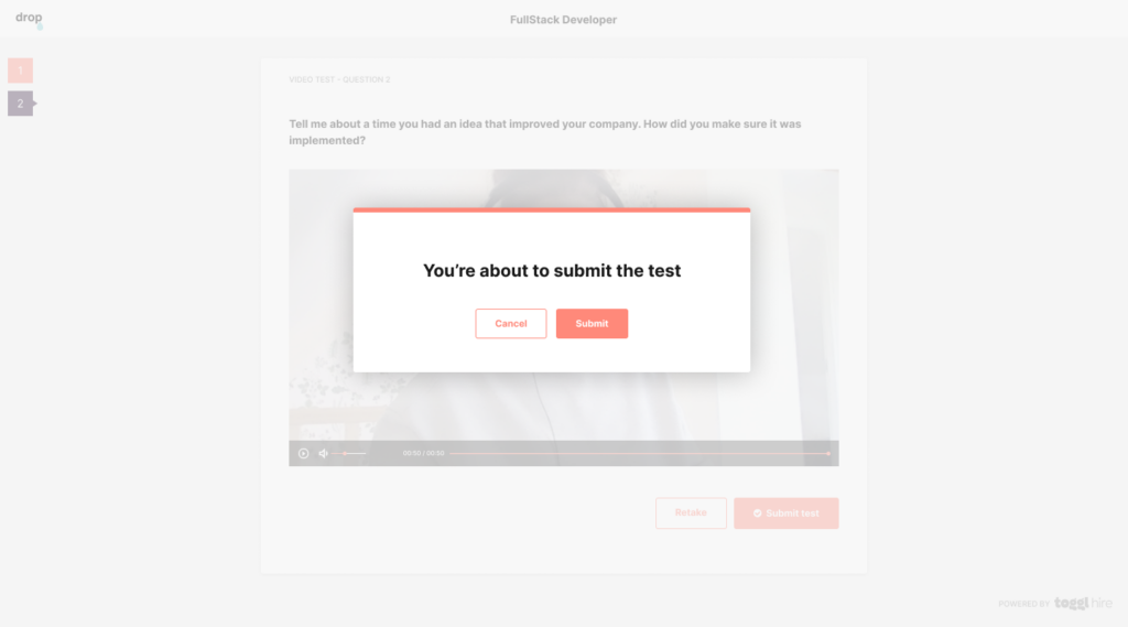 With your responses back in, it’s time to complete the process and review each candidate’s Video Intro. You’ll see all your candidates’ submissions and be able to provide instant feedback directly from the Toggl Hire dashboard.