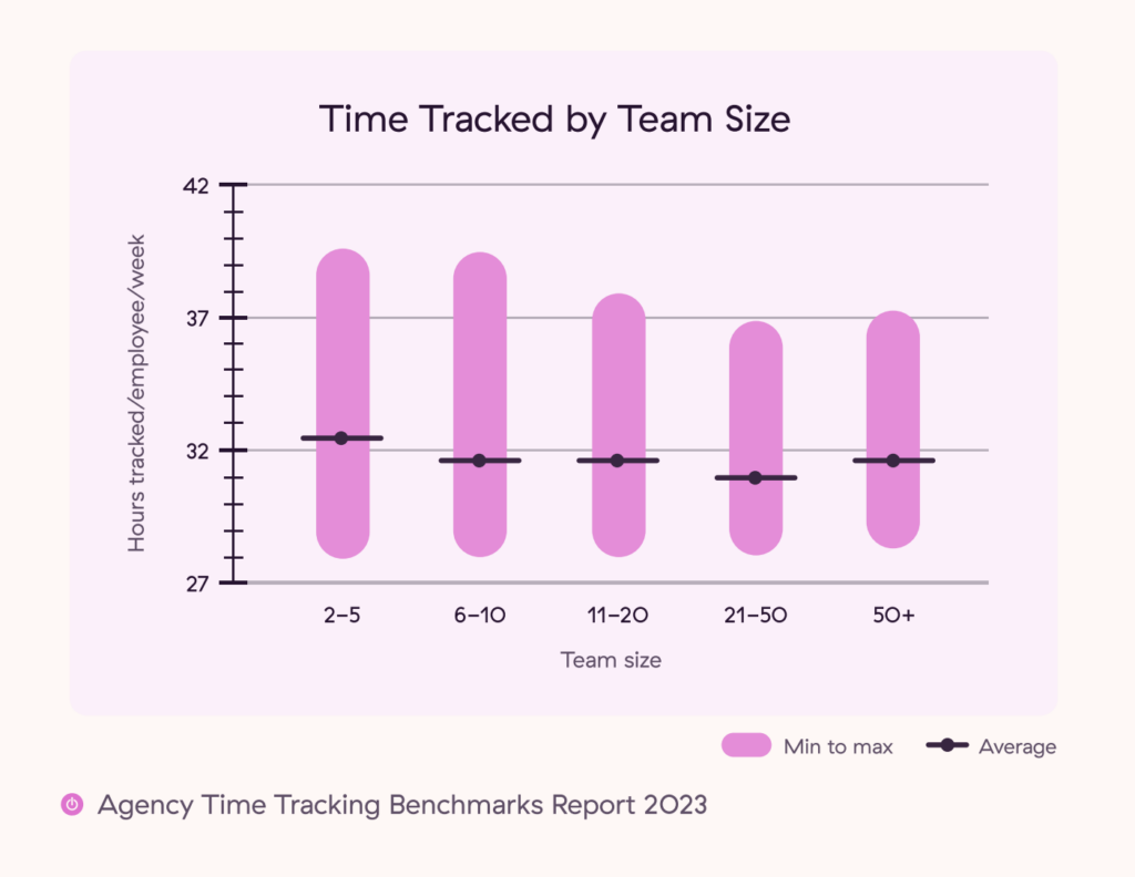 The thing about running an agency is that knowing where your team’s time goes isn’t a nice-to-have data point — it’s a must. However, Toggl’s Agency Time Tracking Benchmarks Report 2023 found that as an agency’s size increases, the number of tracked hours actually decreases.