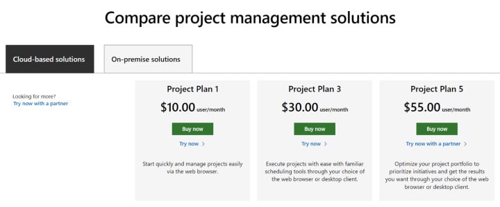 Microsoft Project is available in three price plans.