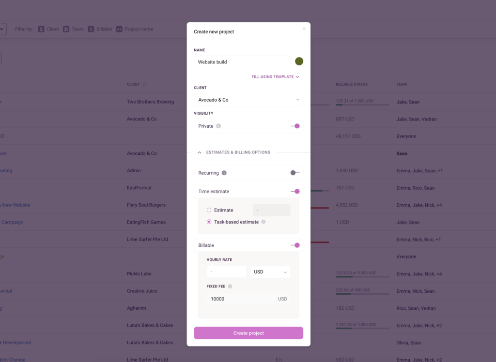 Head to the Project tab and click ‘+ New project’ in the top right-hand corner and: