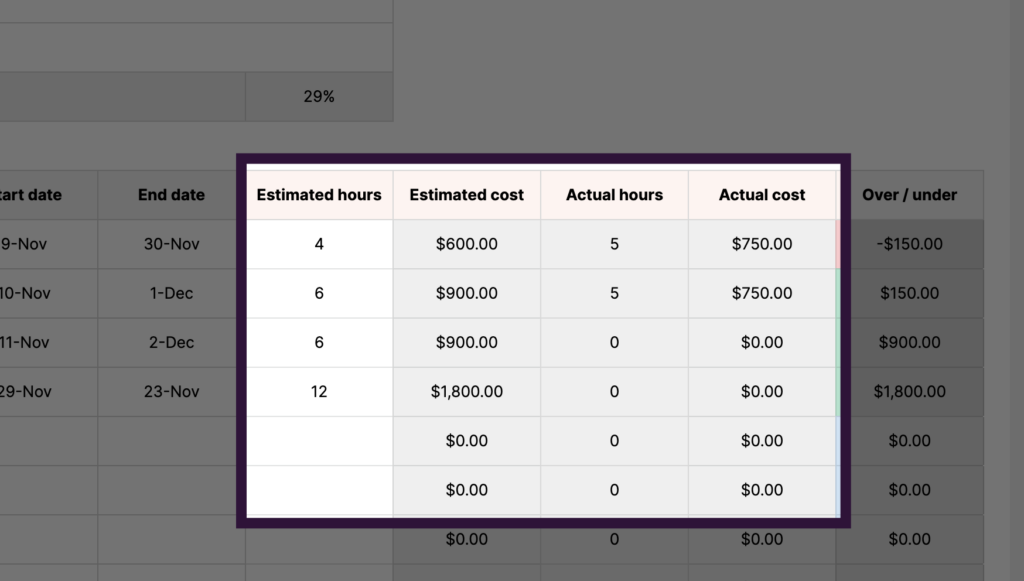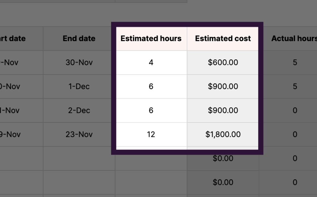 Note: this template works best if you follow the project estimation process in our project cost estimating post.