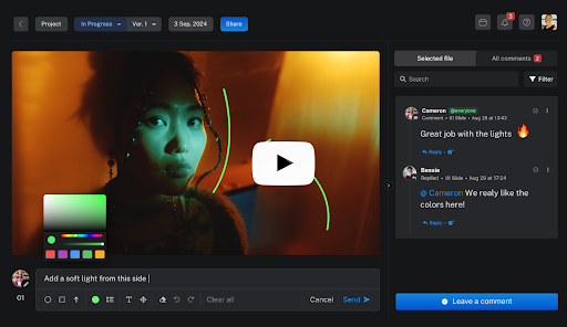- Smooth creative reviews with versioning, comment threads, deadlines, and audit trails.