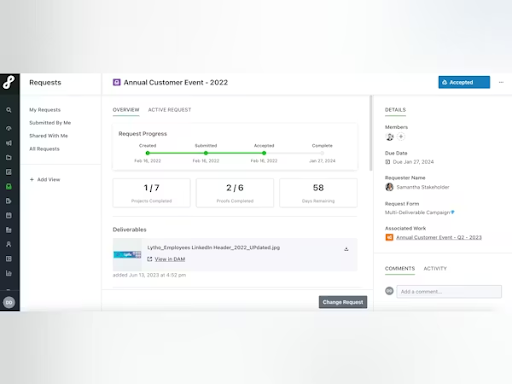 Lytho brings better structure to the otherwise messy (and time-consuming) creative proofing process. It streamlines the key steps like intakes, approvals, and brand safety checks. But it could do slightly better in terms of project planning by adding more flexible task management or repeatable workflows.