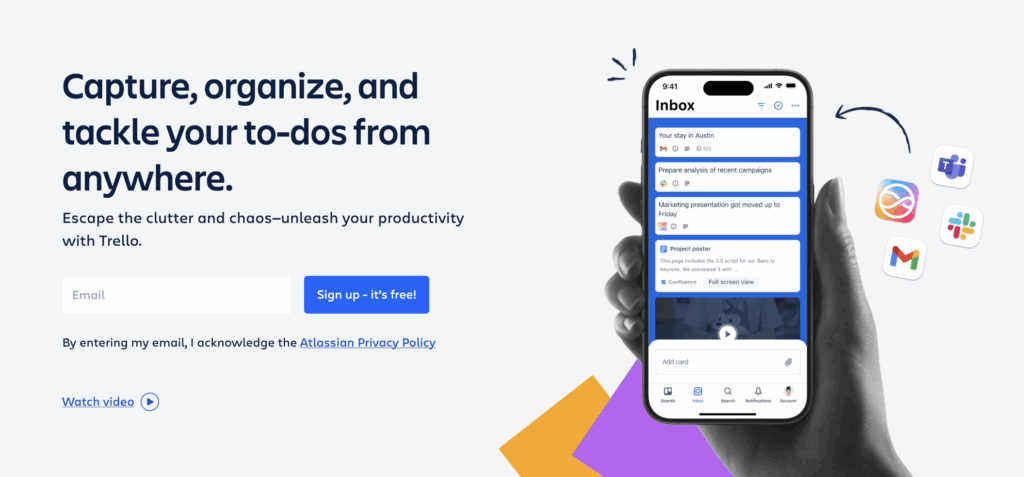 Trello is a board-based task management tool. It’s great for teams that use Kanban or Scrum to manage task-based projects and workflows, and those who value simplicity and ease of use. Trello’s premium plans also include enterprise-level security, AI, and integrations to some of the world’s most popular tools, including Slack, Gmail, and Jira.