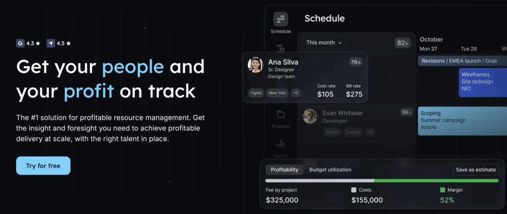 • ResourceGuru is best for teams of all sizes who want a focused solution for resource scheduling and availability tracking.