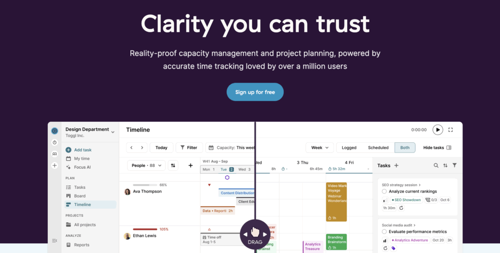• Toggl Focus is best for teams and knowledge-based agencies prioritizing visual planning and wanting a simple resource management solution.