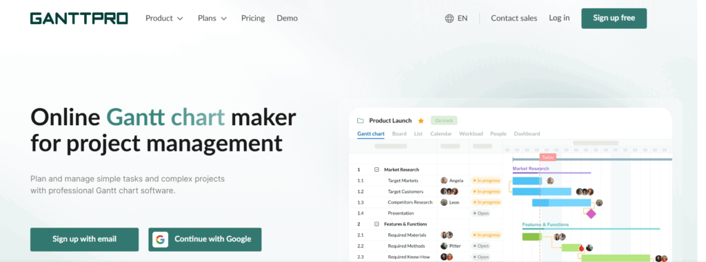 You’re not seeing things — there’s another Gantt tool on the list, and for good reason. GanttPRO is designed for teams that want the simplicity of a timeline-first project view, but with more structure and control than ultra-lightweight tools typically offer.