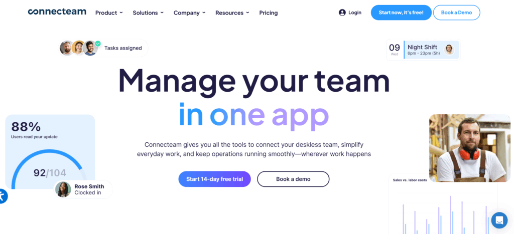 Connecteam specializes in workforce management for mobile, deskless teams, such as engineers and healthcare workers. The platform helps them manage their tasks, resources, schedules, and approvals. On top of this, you can also track time, manage a helpdesk, and even run basic payroll for employees.