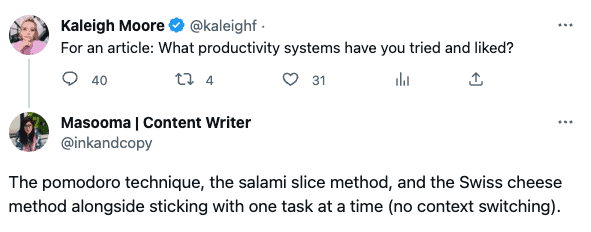 The Swiss Cheese method, coined by Alan Lakein in his book “How to Get Control of Your Time & Your Life,” suggests that the best way to overcome this is to break down larger tasks into smaller ones by “poking holes” like Swiss cheese.