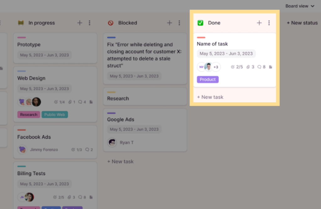 At the end of each day, move completed tasks to the ‘done’ column to track your progress: