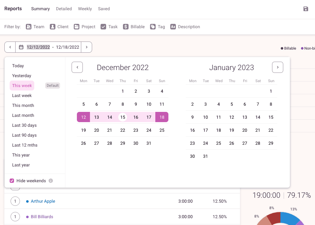 You can now archive clients rather than delete them and hide weekends from your reports. We also have a new setting to view total billable hours on your Timer page.