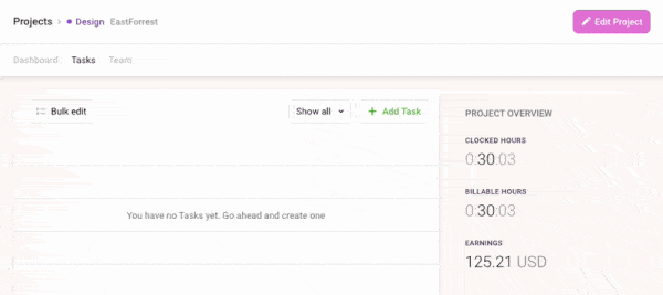 When your team members start tracking time spent on the project, you can access the Project Dashboard to monitor project costs.