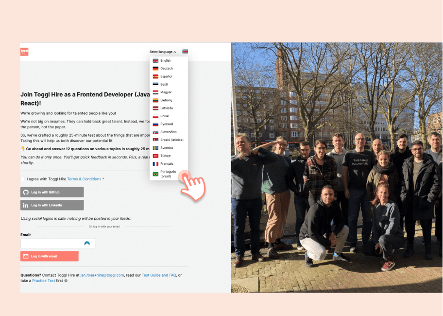 Hiring remotely? Give your candidates a great experience with customizable user interface languages. We have just added French and Brazilian Portuguese to the list of available languages.