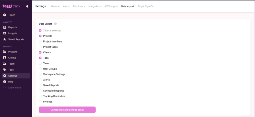 Employers can use Toggl Track’s Reminder feature to ensure their team members don’t forget to track time.