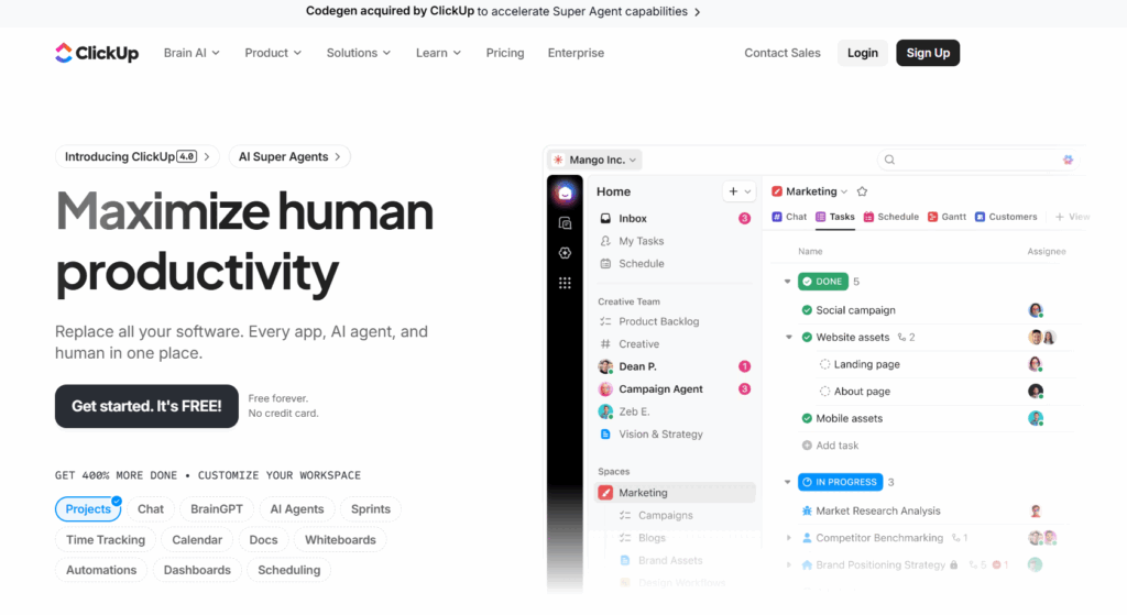 2. ClickUp: Best for teams wanting an all-in-one workspace