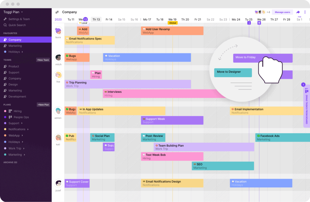 Planning tools help you to visualize the impact of your estimated deadlines better. Allowing you to re-adjust and push back work where necessary.