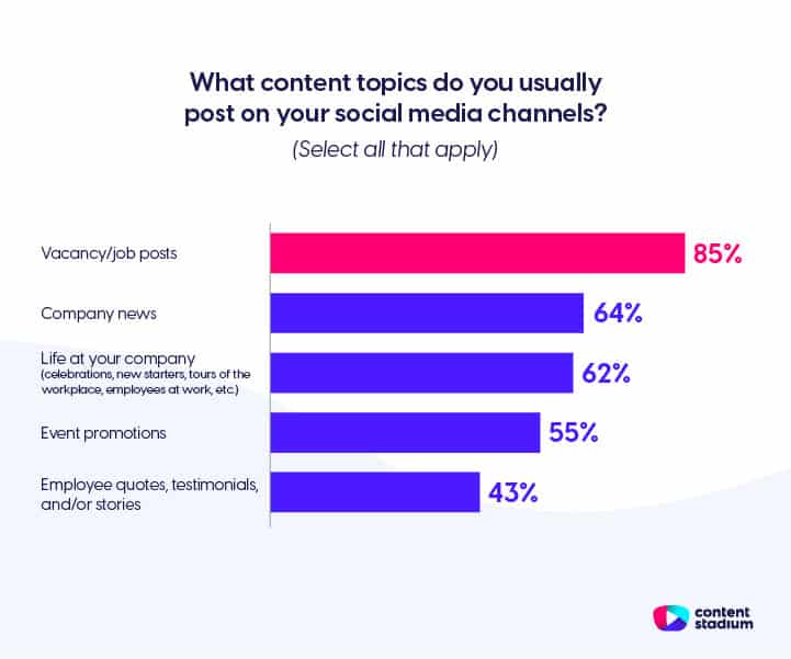 - Elevate your employer brand — sharing your company’s stories about your values and culture on your social channels can boost your employer brand, since 68% of job seekers research companies that attract their attention on social media.