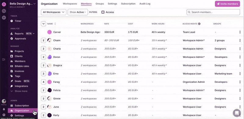 With Toggl Track, you can monitor all the above over any time period (week, month, quarter, year) … plus set specific revenue goals for your employees.